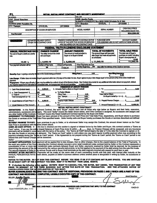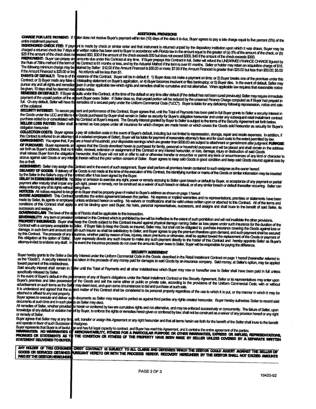 The Retail Installment Contract And Security Agreement (3 Pages)